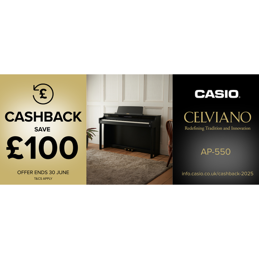 Casio Musical Instruments, long known for their keyboards, have flourished to become one of the world's leading digital piano manufacturers. With Japanese innovation in their DNA, they pair great design with unparalled value for money. Their range has something for everyone with starter instruments for the beginner, their Privia pianos for modern living, through to their more traditional Celviano range including the revolutionary, multi-award winning Grand Hybrid instruments for those looking for the very best performance.