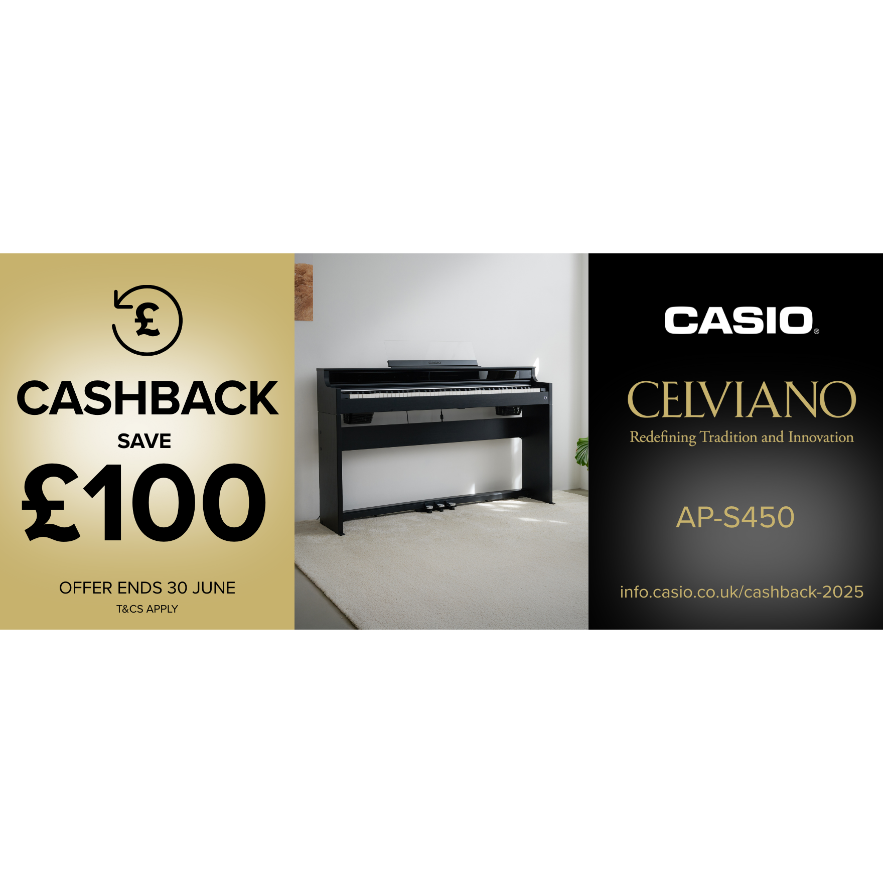 The sleek, compact design of the AP-S450 embodies the ethos of Casio’s new Celviano Slim series: Redefining Tradition Through Innovation. Packed with cutting-edge features, the AP-S450 digital piano comes in three exquisite colours that add sophistication to any setting, including a new luxurious Rosewood finish in addition to the classic Black and White. Each model features a reflective front panel reminiscent of the timeless elegance found in a polished acoustic grand piano.
