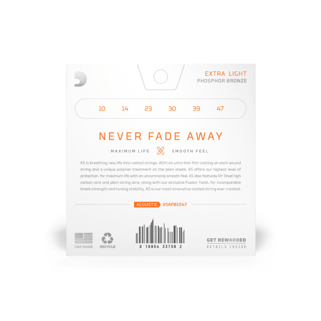 - XS Phosphor Bronze strings have the longest life of any D’Addario acoustic string, thanks to the ultra-thin XS film coating.